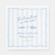 Design branché à la main "Two Less Fish In The Sea" coed wedding shower ou napkin de douche nuptiale avec des éléments originaux. Montré ici en bleu et blanc bleu s'il vous plaît noter TOUTES les couleurs de tous les éléments peuvent être customisés (rayures, arrière - plan, poisson, coeur et bordure). Toutes les oeuvres de cette collection d'invitation sont mes propres oeuvres originales (dessinées à la main et/ou peintes à la main).