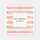 Serviettes en papier avec un élégant motif. Dotée de rayures rose vif et de parties scintillant de confettis en faux or éparpillés un peu partout. Un carré blanc avec une fausse bordure en feuille d'or superposée, avec votre texte personnalisé à l'intérieur.