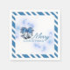 A pretty party napkin just in time for the holidays! If you love the color blue, this one is for you. Blue and White stripes surround the main design that is simple, yet elegant. Silver bells with pine branches and a blue bow enhance bold font reading "Merry Christmas".