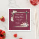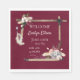 Les statistiques pour bébés Boho du sud-ouest annoncent cet événement parfait. Détails de naissance de bébé pour l'un ou l'autre sexe sur un arrière - plan rouge bordeaux. Le décor comprend des plumes amusantes, des fleurs, de la roche de cristal et de l'arbor à la chaux pour un événement qui fait un souvenir.