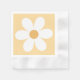 Serviettes de premier anniversaire d'inspiration rétro avec marguerites de style années 70 et polices et couleurs boho.