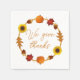 Serviettes de fête de Thanksgiving ou automne avec texte personnalisé. Un cercle de feuilles d'automne, de citrouilles, de glands et de tournesols fait une bordure pour le texte imprimé - l'échantillon est "Bon thanksgiving". À utiliser dans une salle de classe, pour une réception mariage de automne ou pour toute réunion spéciale en cette période de l'année. Les serviettes ont de nombreuses options, dont la couleur, le style et la taille.