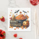 Ajoutez du charme Whimsical à votre table de Fêtes Festive avec cette adorable serviette en papier Halloween. L'oeuvre d'art comporte un cauldron plein de Corn à bonbons. Les feuilles d'automne tombent et le ciel de nuit est plein de chauves-souris. Un Jack-o-lanterne fixe la scène d'automne alors qu'une bougie clignote. Le verset dit : "Heureux Halloween."