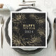 Cette serviette en noir et or de Joyeux Nouvel An présente une illustration moderne, élégante et classe, avec des feux d'artifice importants.