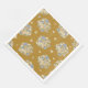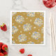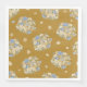 Serviettes en papier avec motifs floraux de bouquets rose pâle, or et fleurs bleues sur un arrière - plan jaune. Campagne, style cottage.