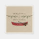 Serviettes en papier illustrant deux branches à feuillage persistant et un canot rouge. Personnalisez le texte. Recherchez les invitations correspondantes et d'autres éléments de coordination chez Jill's Paperie.