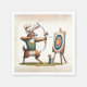 Cerf en cobaye de dessin animé portant un gilet tirant une flèche sur une cible sur un chevalet
