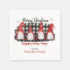 Ces serviettes en papier de vacances sont équipées de quatre petits génomes à barbe blanche apportant des salutations saisonnières. Chacun des gnomes est habillé d'un motif rouge et blanc différent sur ses grands chapeaux de Père Noël. Les images sont placées sur un arrière - plan de balançoire à buffle noir et blanc. Des flocons de neige éparpillés dérivent autour d'eux. Le texte du script "Joyeux Noël" est en blanc au-dessus d'eux, et "Bonne Année" est ci-dessous. Votre texte personnalisé est en noir et rouge en bas.