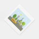Un bus scolaire avec la ville dans l'arrière - plan. Ce design semble vraiment efficace sur ces serviettes en papier