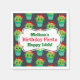 Serviettes en papier d'anniversaire avec un motif extensible. Une jolie illustration d'un cactus rond, avec de grands yeux kawaii, souriant et portant un sombrero rouge. À l'intérieur d'un pot de fleurs. L'arrière - plan est une image de tableau noir. Cadre décoratif élégant superposé avec votre texte personnalisé à l'intérieur.
