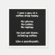 Pour l'amoureux du sarcasme en chacun de nous. Regardez cette histoire : "J'ai vu un gars dans un café aujourd'hui. Pas de téléphone. Pas de tablette. Pas de portable. Il s'est juste assis là. Boire du café. Comme un psychopathe." design sur vêtements et cadeaux.