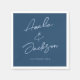Serviettes de mariage modernes et élégantes avec écriture manuscrite simple et élégante bleu poussiéreux sur un arrière - plan turquoise. Customisez avec vos détails uniques.