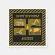 Ce design comprend quatre camions de construction classiques en jaune gras disposés ensemble sur un arrière - plan marron et noir. Il comprend d'autres éléments de construction comme des rails de garde et des cônes de circulation et des bandes de trafic noir et jaune. Nous vous avons couvert pour une soirée à thème camions de construction : fournitures, déco, délicieuses friandises et cadeaux personnalisés significatifs!