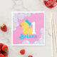 Pink Girl Rubber Duck Personnalisé Anniversaire Papier Napkins, personnalisez avec votre nom et votre âge!