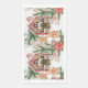 Christmas and New Year Paper towel with candy cane house, gingerbread man and gingerbread woman, poinsettias and pine branches.