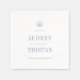 CAPE COD Bleu côtier, serviettes mariages en papier. Caractéristiques, typographie bleu clair et illustration du coquillage de Saint-Jacques.