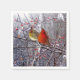 Deux cardinaux lumineux dans une forêt enneigée. Serviettes disponibles en taille de cocktail ou en taille de déjeuner plus grande.