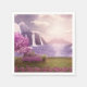 Serviettes en papier à l'image pittoresque d'un lac violet paisible. Entouré de cerisiers luxuriants et de cascades.