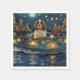 Jetez un coup d'oeil à la magie de la saison des Fêtes avec cette illustration magnifiquement détaillée, montrant un chien fier assis dans un bateau à la décoration festive, glissant à travers un lac serein de Noël. Les lumières scintillantes des pins voisins se reflètent dans l'eau, projetant une lumière chaude et festive qui renforce l'ambiance cosy. Des ornements pendent des côtés du bateau, tandis que des lanternes brillantes éclairent le chemin, créant une scène qui capture l'essence véritable de la chaleur et de la joie de Noël. Cette oeuvre nostalgique apporte une touche de magie de vacances à tout espace, parfait pour ceux qui chérissent l'esprit de la saison.