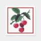 Forfait de 50 serviettes de cocktail en papier blanc avec une image vintage des années 1940 de cerises rouges. Bordure rouge. Voir la serviette en tissu assortie, serviette de cuisine, set de table en tissu, set de table en papier et dessous de verre. Voir la collection Patriotic 40s Napkin entière dans le FOOD/BEV | Section Linge.