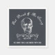 Des serviettes en papier Halloween imprimées sur mesure pour correspondre à notre collection de crâne Vintage. Personnalisez-le avec votre nom de famille, les détails de votre fête ou tout autre texte personnalisé autour d'une illustration crânienne vintage en détresse et de défiler ornement sur un arrière - plan de tableau noir gris fusain. Utilisez les outils de conception pour modifier les polices de texte et les couleurs et ajouter vos propres photos et texte pour créer votre propre décoration de fête d'Halloween unique.