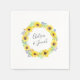 Conçues pour s'adapter à notre collection de mariages rustiques Flowerfields, ces serviettes rustiques chic arborent vos noms en écriture manuscrite, encerclés par une couronne florale d'aquarelle de tournesols jaunes estivales, de feuilles verts et de minuscules bourgeons bleu marine et violet.