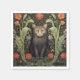 Chat noir et fleurs rouges style Art nouveau, William Morris inspiré art.