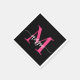 Serviette En Papier Chaud rose noir moderne Script Girl Monogramme Nom