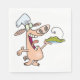Un cochon tient une assiette de nourriture. Ce design semble vraiment efficace sur ces serviettes en papier