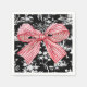 Ces serviettes élégantes sont la touche de finition parfaite pour tout baby shower préppy classique. L'arc à rayures rouges et blanches molles est placé sur un arrière - plan de chinoiserie noir.