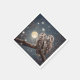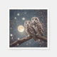 Paire de chouettes perchées sur une branche d'arbre avec une pleine lune et étoiles dans un ciel bleu foncé.