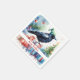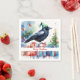 Paper napkins featuring a cute watercolor crow with a Christmas hat. Customizable.