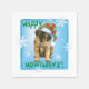 Célébrez la saison des Fêtes avec un mignon chiot Leonberger portant un casquette de bas au milieu d'un bouquet de flocons de neige. Joyeux Howlidays !