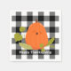 Joyeux citrouille orange avec feuilles verts sur buffle noir et blanc plaid. Le texte peut être modifié ou supprimé.