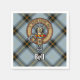 Clan Bell écusson badge entouré d'une sangle et boucle sur l'arrière - plan tartan. Texte personnalisé.