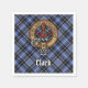 Clan Clark badge crête entouré d'une sangle et boucle sur l'arrière - plan tartan. Texte personnalisé.