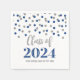 Serviettes de graduation personnalisables pour classe de 2024 avec motif glamour argent et confetti bleu.