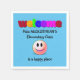 Bleu vif Accueil de l'enseignant à Mes serviettes en papier de classe, montrant un ACCUEIL coloré brillant suivi d'un libellé qui dit (insérez votre nom ici) LA CLASSE EST UN ENDROIT HEUREUX. Ce texte est PERSONNALISABLE pour que vous puissiez ajouter votre nom et votre classe ou créer votre propre texte. Il y a aussi une icône de visage souriant. Vous pouvez utiliser ces serviettes de bienvenue pour accueillir vos nouveaux élèves à l'école avec une fête d'accueil spéciale. Des articles de fête et des cadeaux correspondants sont disponibles. Aussi en blanc.