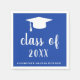 La serviette minimaliste de graduation avec un design simple et classique avec un grand casquette et "classe de l'année" dans une épaisse écriture manuscrite avec le nom du diplômé en blanc sur un arrière - plan bleu. La couleur arrière - plan peut être changée en n'importe quelle couleur. Un style traditionnel avec une touche moderne pour une jeune diplômée. Ces serviettes en papier sont une excellente façon d'ajouter une touche personnelle à votre fête de remise des diplômes.