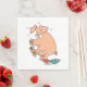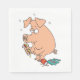 Un cochon plein avec un hot-dog et une boisson de cola. Ce design semble vraiment efficace sur ces serviettes en papier