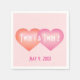Cette serviette à coeurs jumeaux - parfaite pour un baby shower, un baptême ou un anniversaire jumeaux - est dotée d'un coeur saumon et d'un coeur rose, chacun avec un centre blanchi à la chaux, recouvert d'un modèle texte pour les noms de bébés. L'image à double coeur est également appropriée pour les fêtes de fiançailles, les mariages, les douches nuptiales et les célébrations d'anniversaire.