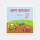 Célébrez la grande journée de votre petit garçon avec cette jolie serviette en papier anniversaire de enfant personnalisée qui a trois camions monstres colorés. Il y a un camion monstre vert qui traverse un anneau de feu, un camion monstre rouge qui regarde, et un camion monstre bleu qui saute au-dessus d'un tas de terre. Il y a aussi à damiers drapeaux de course, le texte Joyeux Anniversaire, le nom et l'âge de votre enfant. Cette serviette en papier fait un ajout amusant de fête personnalisée pour tout jeune enfant qui aime les camions monstres et est parfait pour les fêtes d'anniversaire!