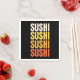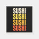 Sobre design de texte coloré avec "Sushi, Sushi, Sushi, Sushi" en beige, jaune, orange et rouge