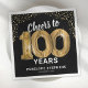 Élégantes serviettes de fête du 100ème anniversaire avec un arrière - plan noir élégant qui peut être changée en n'importe quelle couleur, parties scintillant brillante or, le dicton "encourage à 100 ans" en utilisant un hélium hundered en or ballons, leur nom, et la date de la célébration.