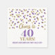 Des serviettes personnalisables pour la fête du 40e anniversaire avec des confettis en or et en parties scintillant violet.