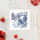Design de la Fête du Bastille à l'aspect vintage avec un coq bleu gaulois, des roses, et les mots : Liberté, Egalité, Fraternité.