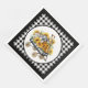 A Black And White Gingham Paper Napkin Of A Vintage Toy Wagon Filled With Sunflowers and Pumpkins