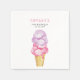Une serviette en papier pour la fête d'anniversaire pour enfants à thème de crème glacée amusante avec l'aquarelle illustrant des crèmes glacées rose et violet sur un cône gaufre. Parfait pour une fête d'anniversaire de fille en été.