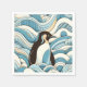 Serviette En Papier Crêpe Bleue Ciel Vagues Océaniques Et Pingouin Cut