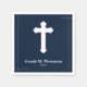 Simple et classe, ces serviettes modernes en papier Croix Première Sainte Communion sont l'ajout parfait à la célébration de la première communion sainte de votre enfant, le baptême, le baptême, le baptême ou les funérailles. Présente une croix blanche et des lignes abstraites sur un arrière - plan bleu marine. Toute la typographie blanche est changeable. Correspond à nos autres produits modernes de design bleu marine.
